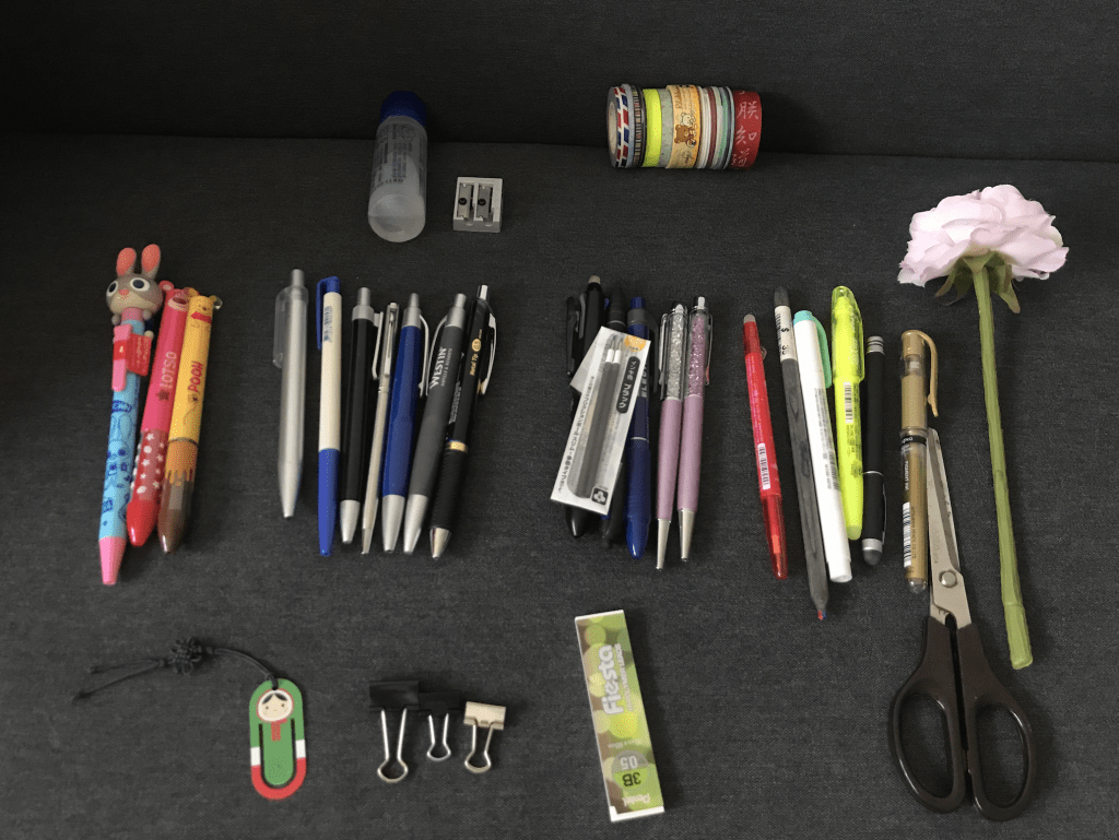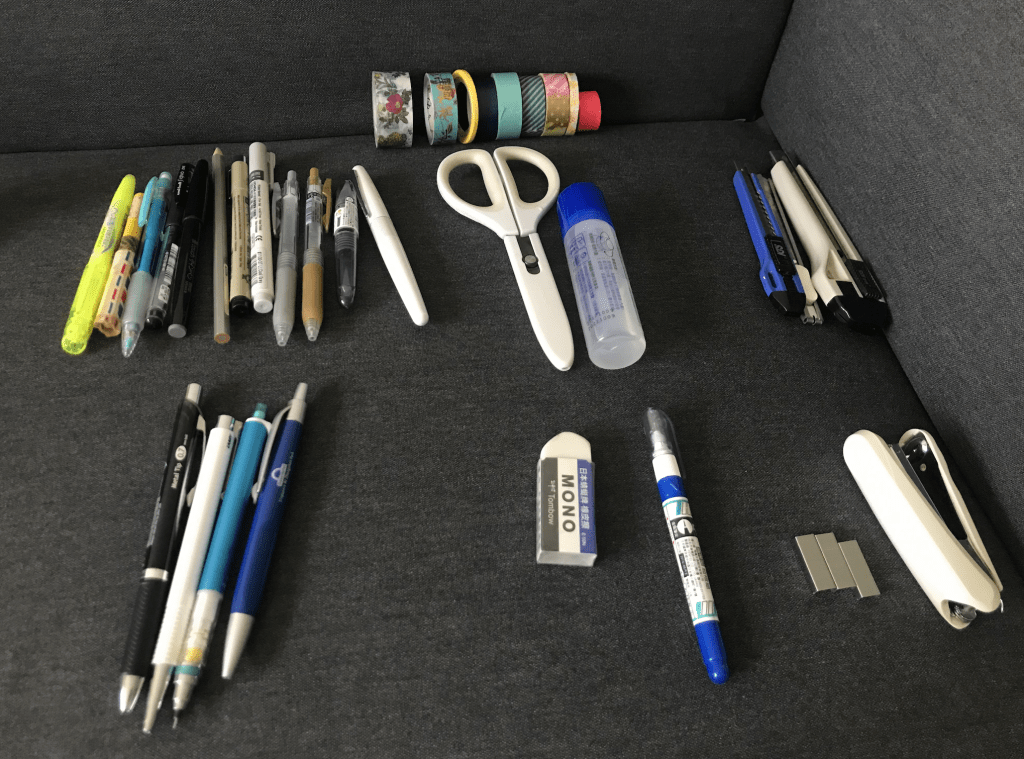 在進行文具收納以前,第一步永遠是檢視所有的文具,把自己沒在用文具捨離掉。