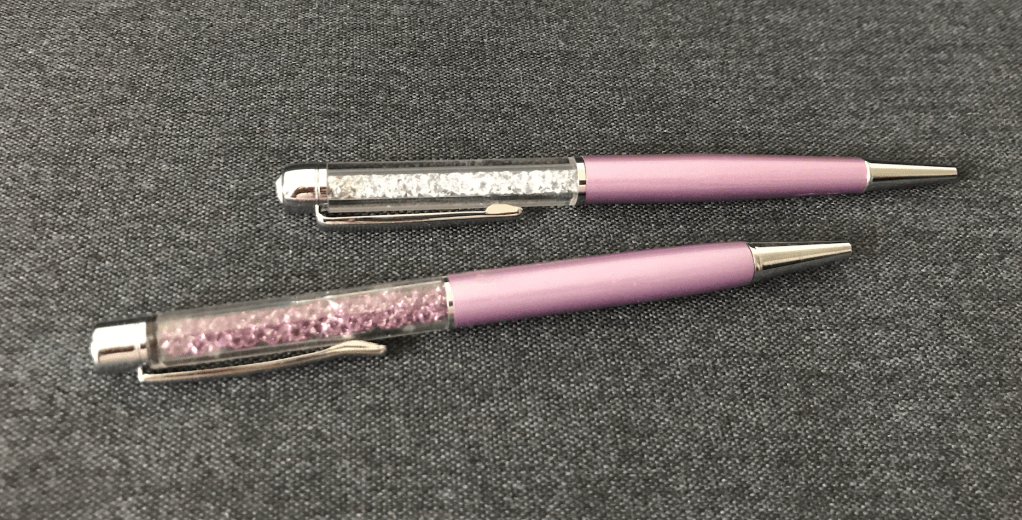 - 這次捨離掉了兩隻施華洛世奇水晶原子筆,這是好幾年前一位敬重的師長送的。雖然筆寫起來很滑順,握起來的手感也很好,但因為我不喜歡紫色, 它旋轉出筆頭的方式也稍嫌麻煩,另外水用完後也不知道要去哪裡買替芯,所以一直遲遲沒用。