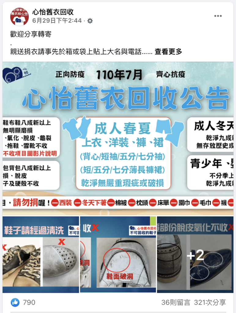 昨天下午,我第一次嘗試不這麼做,而是裝箱後親送到一個公益組織:心怡舊衣回收中心。