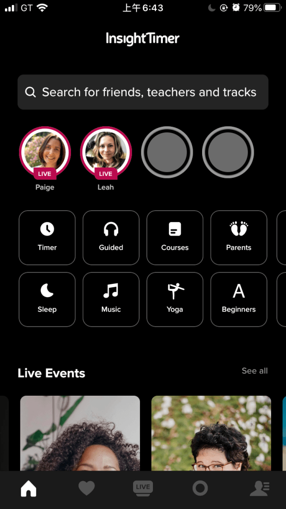 - 依想進行的活動選擇:睡前冥想、早晨冥想、助眠、處理工作的專注時刻… 等等。Insight timer 提供了很多適合的方式供選擇。除此之外,裡面也有一些瑜伽課、身心靈相關的課程等等,資源蠻豐富的。